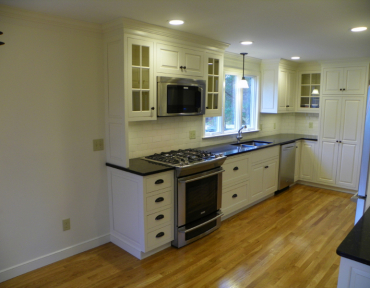 This transitional kitchen remodel focused on creating a brighter, more functional space with better flow between the kitchen and dining room. New hardwood flooring, custom inset cabinetry in linen white, and clever storage solutions like pull-out trays, deep drawers, and a built-in wine cubby brought elegance and efficiency. Quartz countertops in Silestone ‘Doradus’ offered the beauty of marble without the upkeep, paired with a sleek stainless sink and faucet. LED dimmable lighting highlights porcelain subway tile and enhances workspaces. The result: a clean, modern kitchen with timeless appeal—and delighted homeowners.