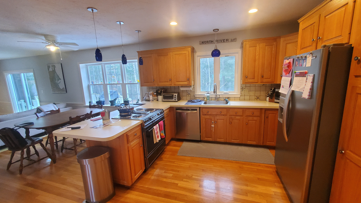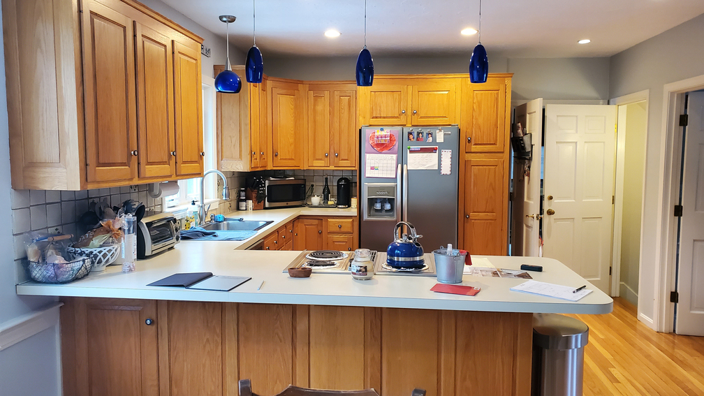 Our clients came to us hoping to breathe new life into their dark, outdated 1980s kitchen. Their goal was to create a stylish yet family-friendly space that offered better flow, more functional storage, and an inviting atmosphere for everyday living and entertainment. The biggest transformation came from removing the wall between the kitchen and dining room, which required engineering and installing a concealed 15-foot structural steel beam to support the second floor, along with structural modifications in the basement below. This change opened a beautiful 675-square-foot space, now filled with natural light from existing front-facing windows—perfect for brightening winter days and enhancing the connection between kitchen, dining, and living areas.