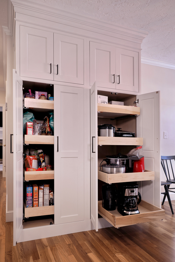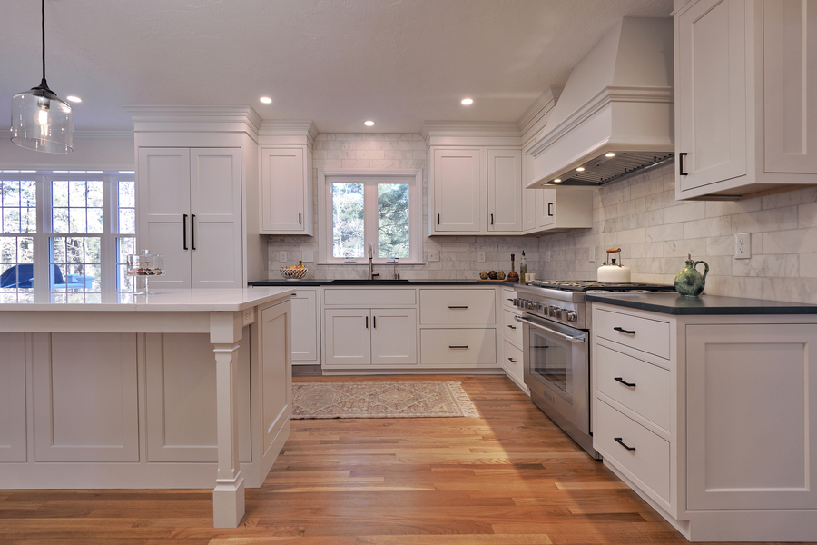 Planning and collaboration were key. Seamless quartz countertop veining, carefully integrated appliances, and a soft, serene color palette bring a sense of balance and sophistication. Every zone was designed for function—from kid-friendly seating to cooking and prep areas—while keeping the design warm and welcoming. Hardwood floors, glass-front display cabinets, and statement lighting tie it all together, giving this kitchen a polished, transitional look that feels bright, comfortable, and livable. The result is a stunning, light-filled space that blends beauty, organization, and practicality—everything this family hoped for in their dream kitchen.
