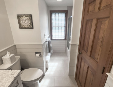 When this homeowner purchased his property, he loved the wooded surroundings—but the 1980s pink-hued bathroom had to go. Wanting a softer, more timeless look, he turned to Renovisions to transform his second-floor main bath into a space he’d enjoy using every day.